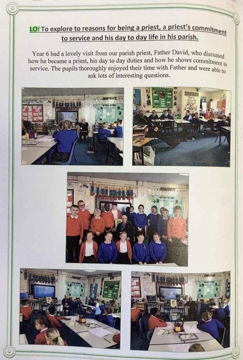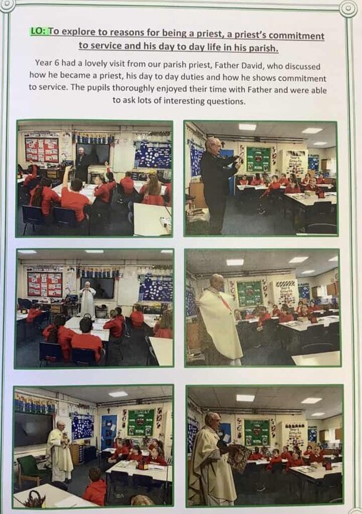 In teaching RE, the school uses the Diocesan approved scheme ‘Come and see.’ Children learn about the Catholic faith through a variety of topics and activities during the year.